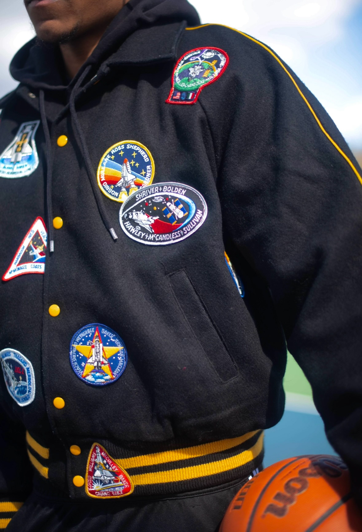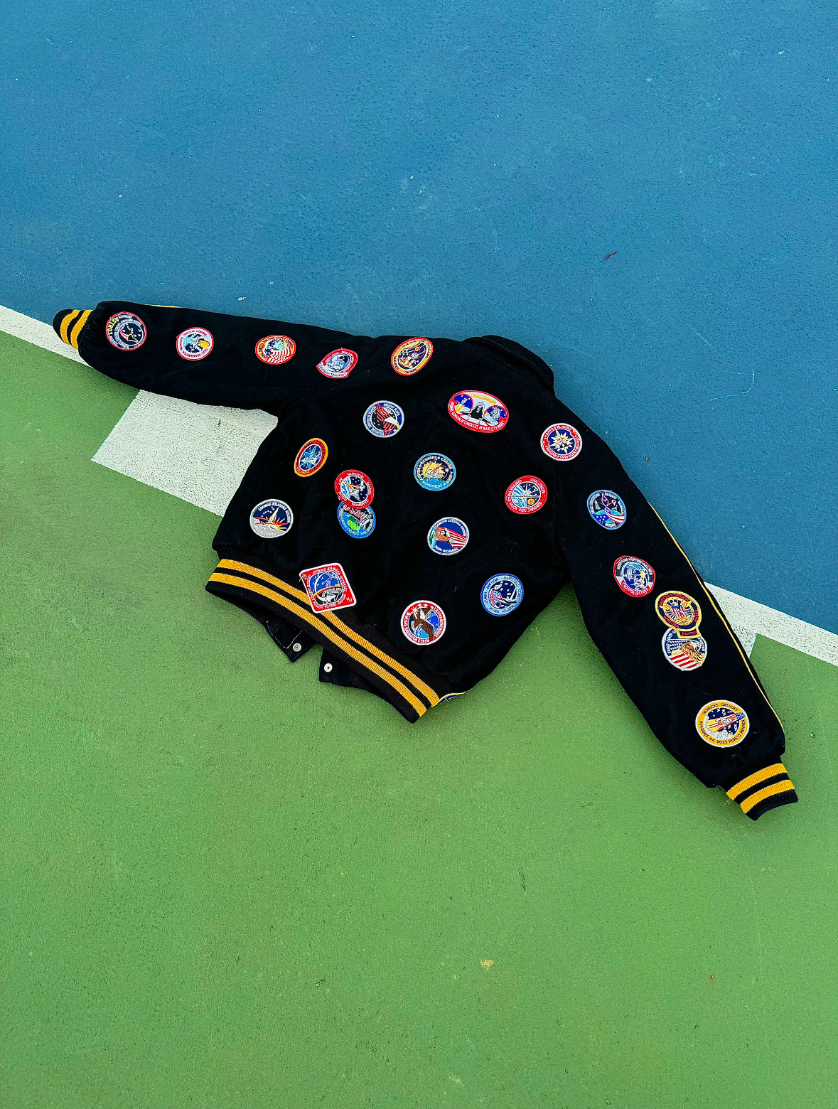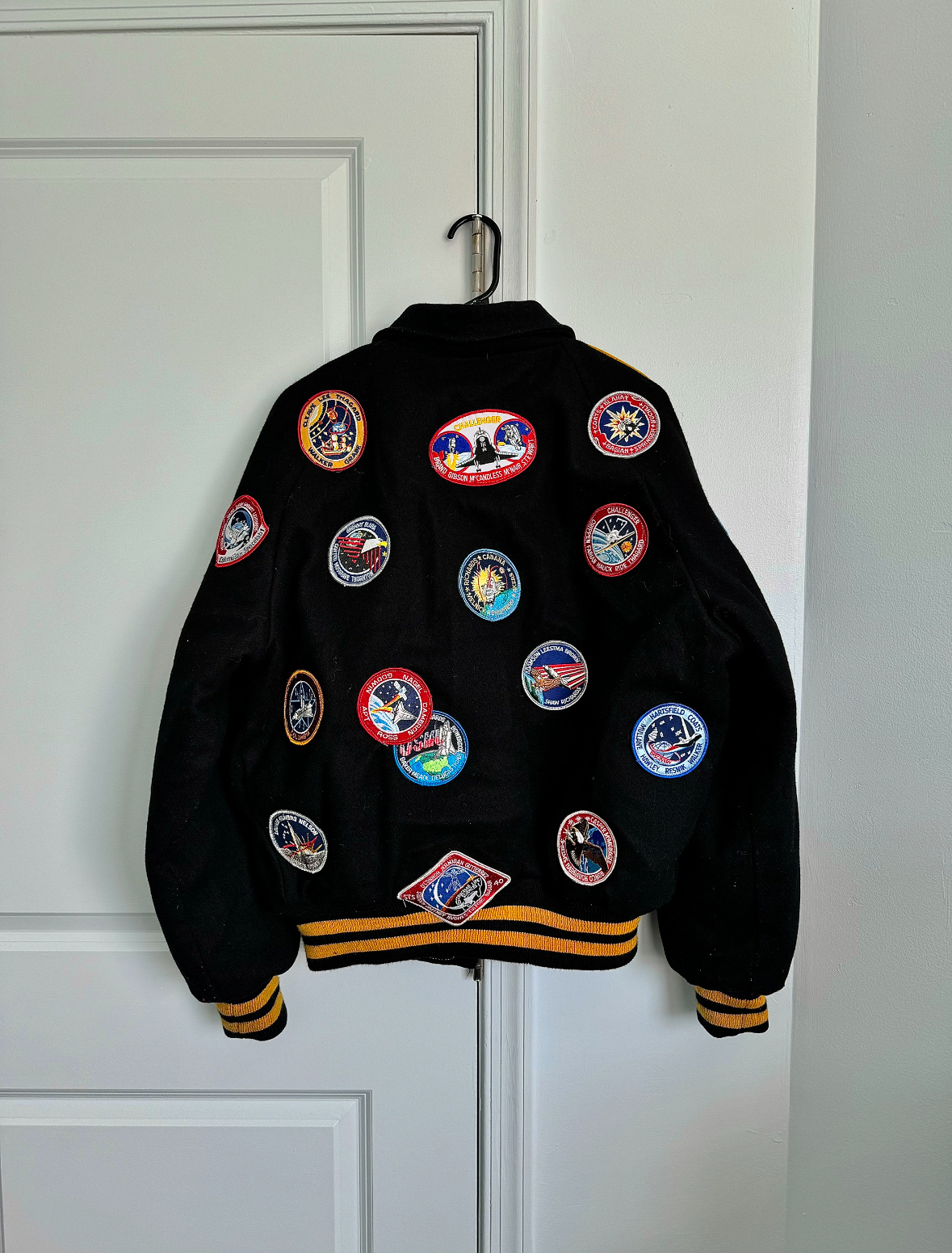 1960's varsity jacket hand embroidered with NASA STS Mission patches. Sourced and designed